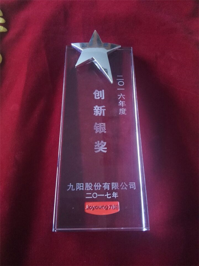 3月2日华宝公司荣获九阳股份“2016年度创新银奖”,董事长胡仁宝在九阳领奖台上接受奖牌。