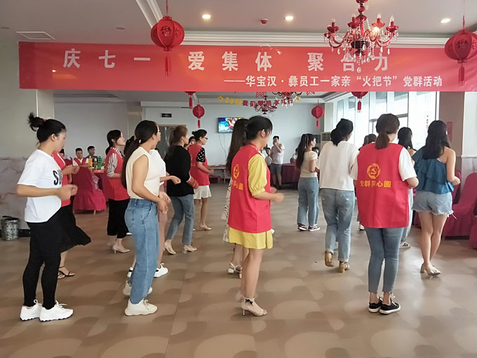 在中国共产党成立98周年之际,为了提倡广大员工爱国家、爱集体、爱家庭的良好风气,汇聚起员工敬岗爱业、认真干事正能量,同时为了关爱、丰富员工的业余生活,华宝公司党支部、工会联合行政中心、供应链管理中心组织主题为:庆七一 爱集体 聚合力一一华宝汉·彝各族员工一家亲“火把节”党群活动,参加活动的有少数民族员工70多人以及全体党员、各车间主管级以上和后勤人员等,总计参加人数近百人,让少数民族同胞感受到了党的温暖,家的归属感!
